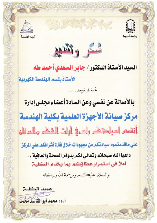 السيد الأستاذ الدكتور/ جابر السعدى أحمد طه الأستاذ بقسم الهندسة الكهربية