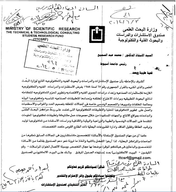 صندوق الإستشارات والبحوث الفنية والتكنولوجية التابع لوزارة البحث العلمى 10 يونيو 2014 صندوق الإستشارات والبحوث الفنية والتكنولوجية التابع لوزارة البحث العلمى