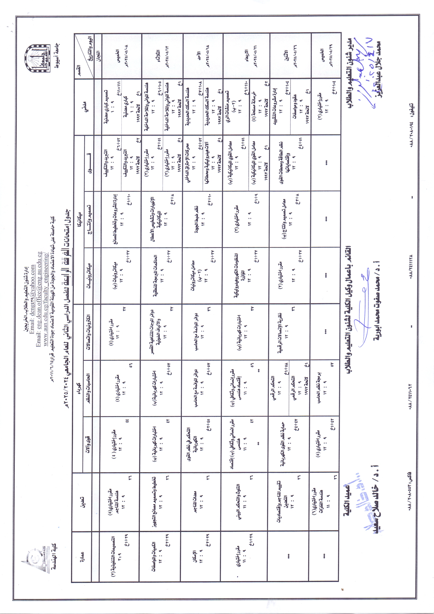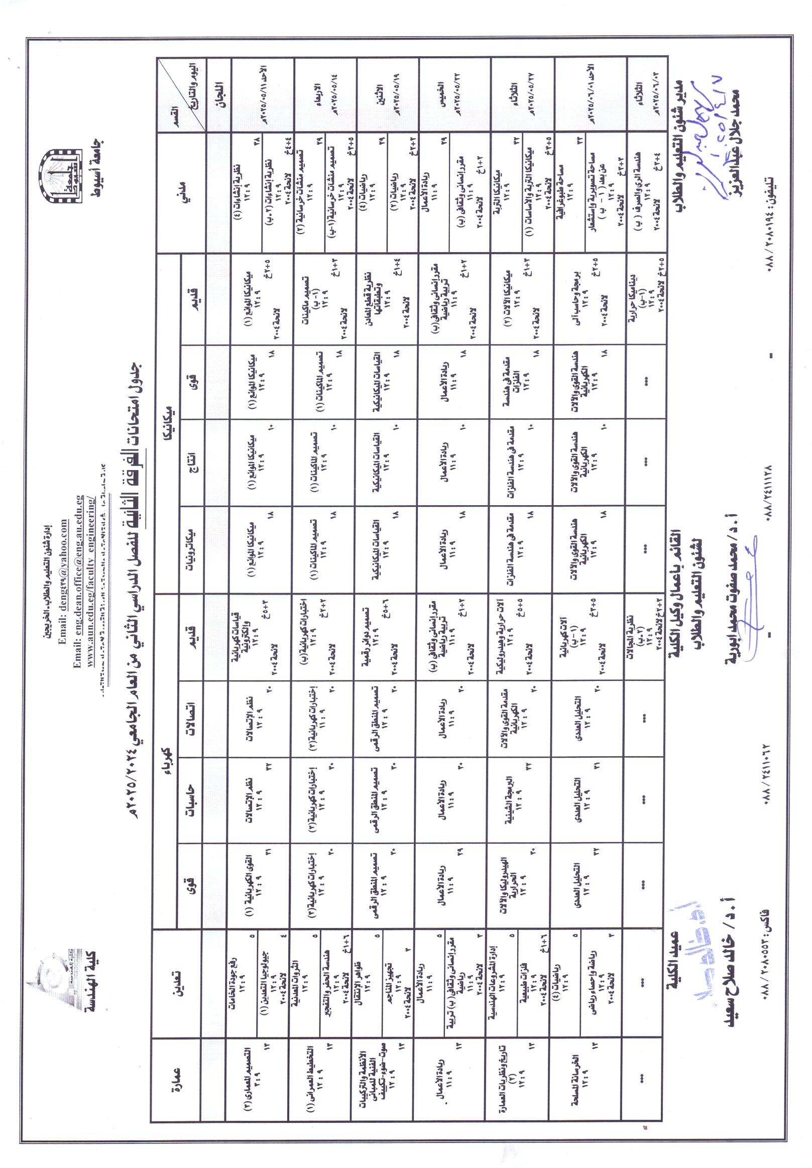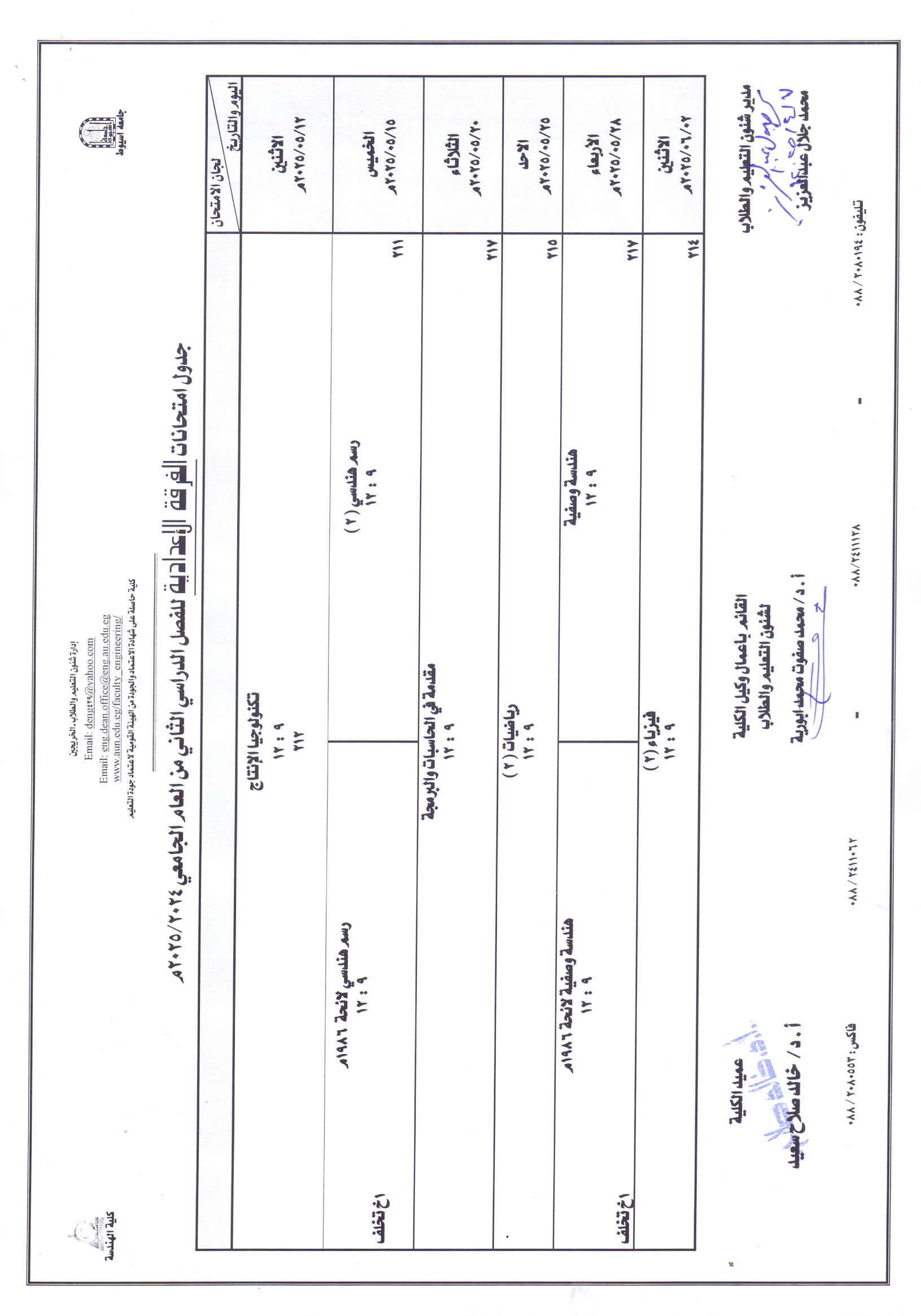 جداول الامتحانات للفصل الدراسي الثاني لجميع الفرق والأقسام للعام الجامعي 2025/2024 :