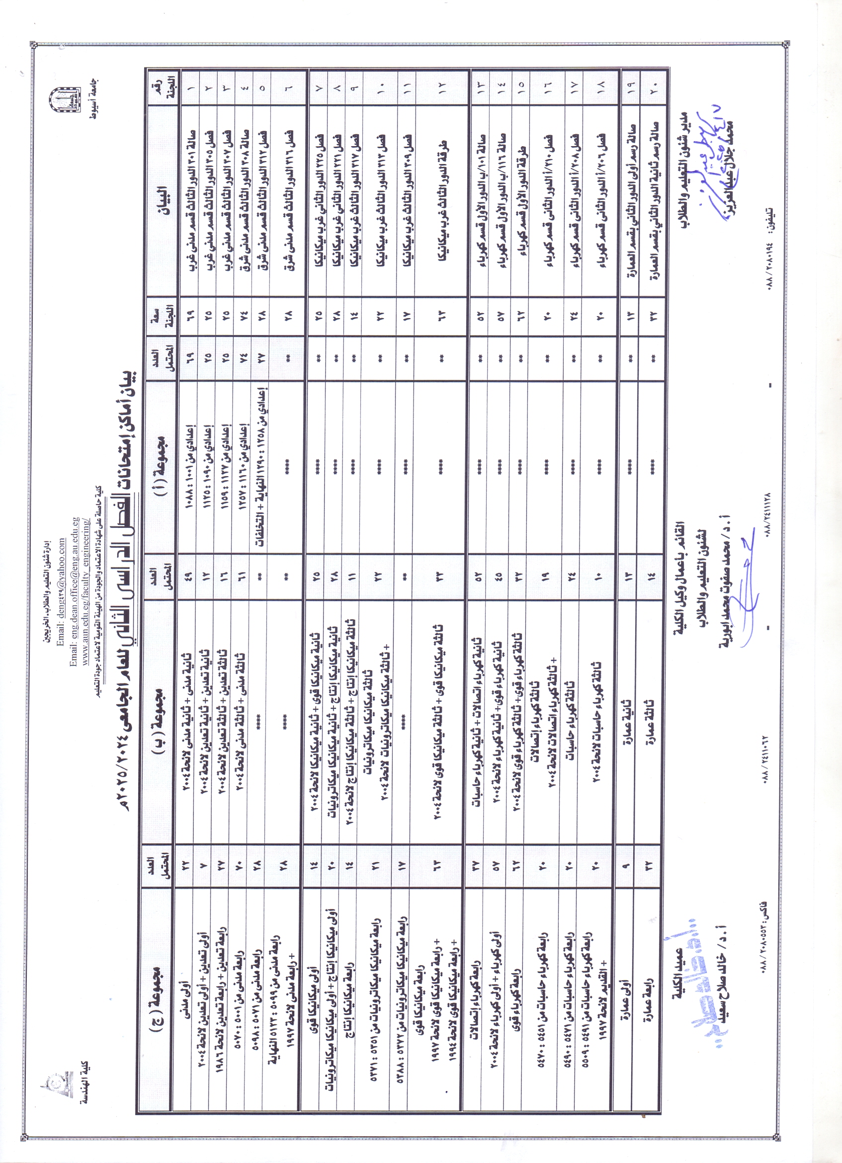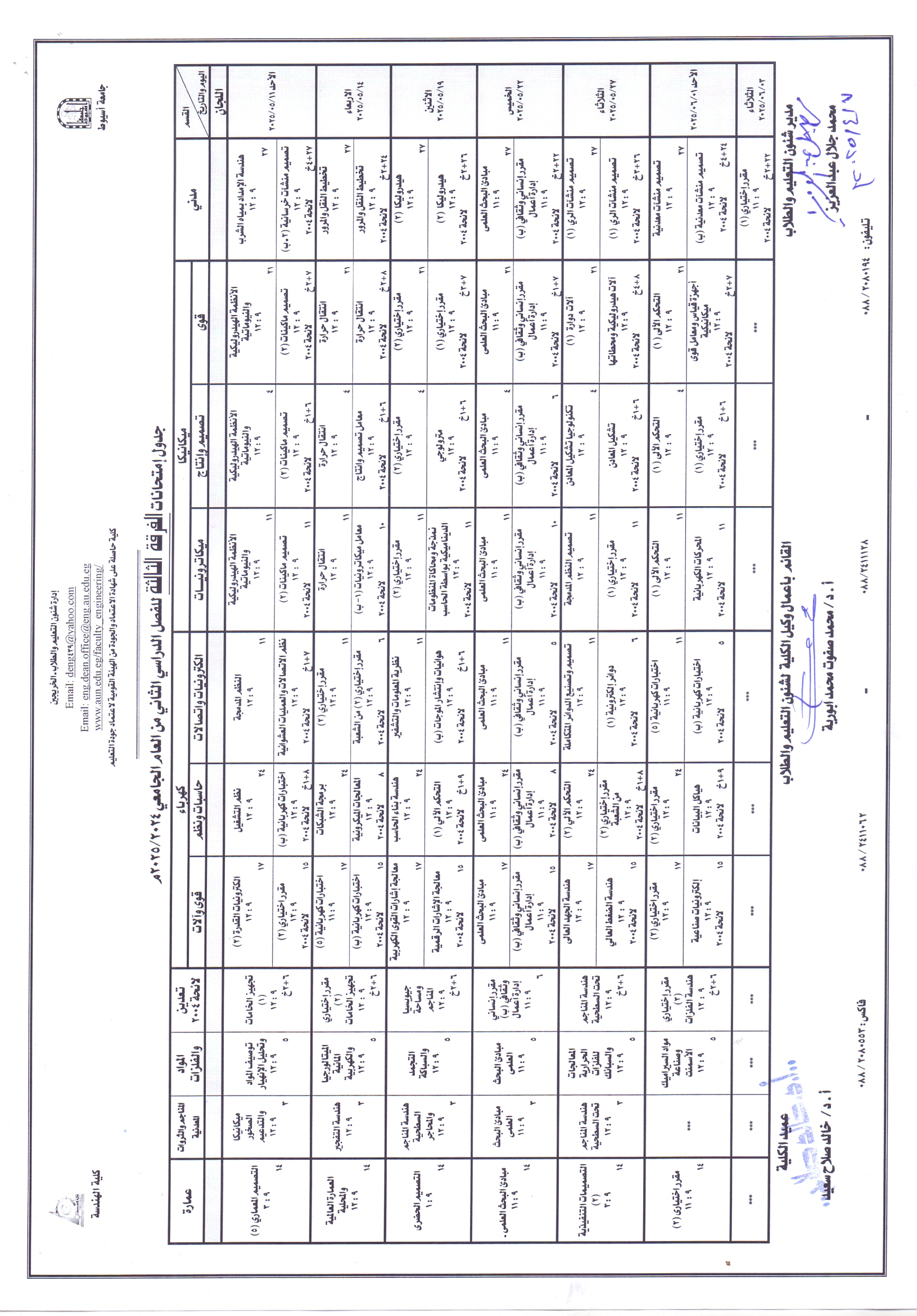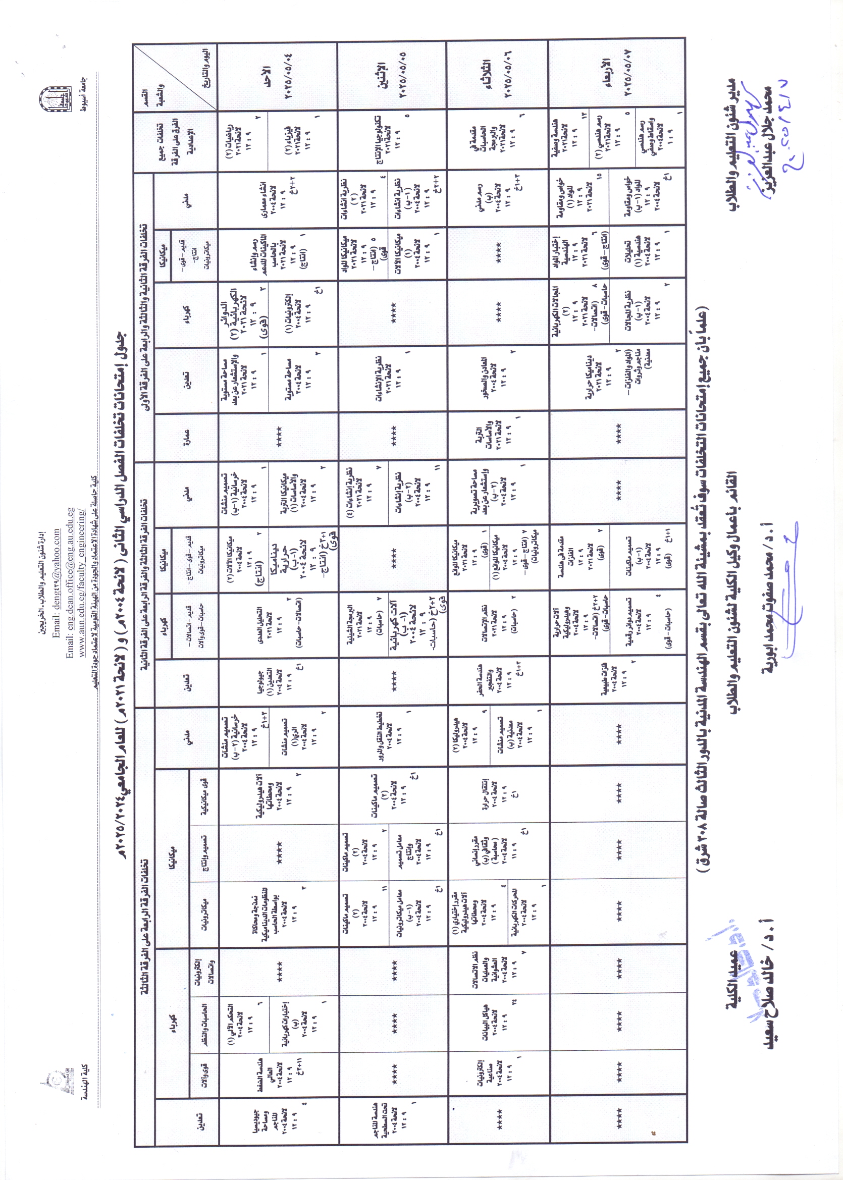 جداول الامتحانات للفصل الدراسي الثاني لجميع الفرق والأقسام للعام الجامعي 2025/2024 :