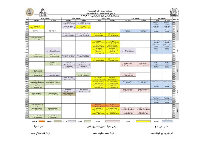 جدول برنامج هندسة التشييد وإدارة المشروعات للفصل الدراسي الأول للعام الجامعي 20252026م