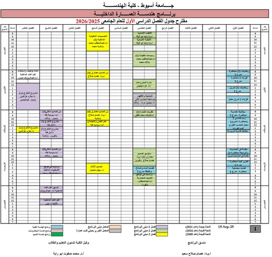 جدول برنامج هندسة العمارة الداخلية للفصل الدراسي الأول للعام الجامعي 2025/2026م