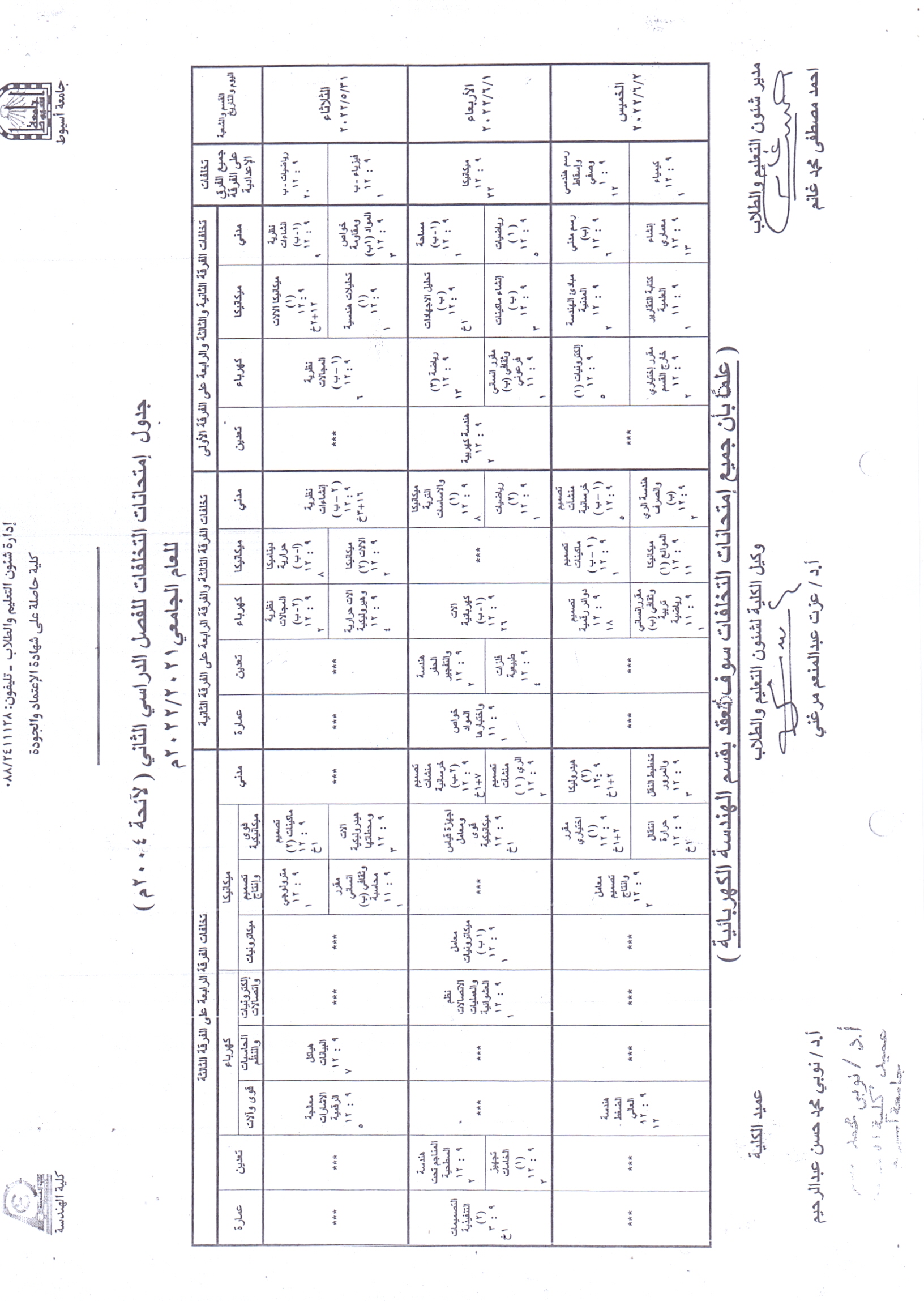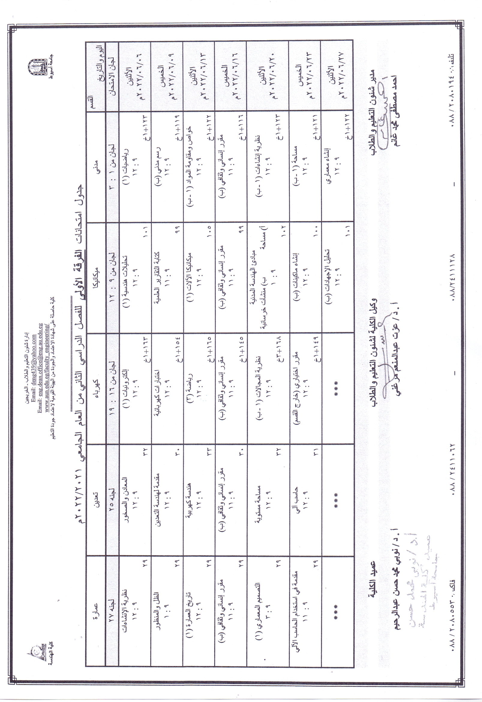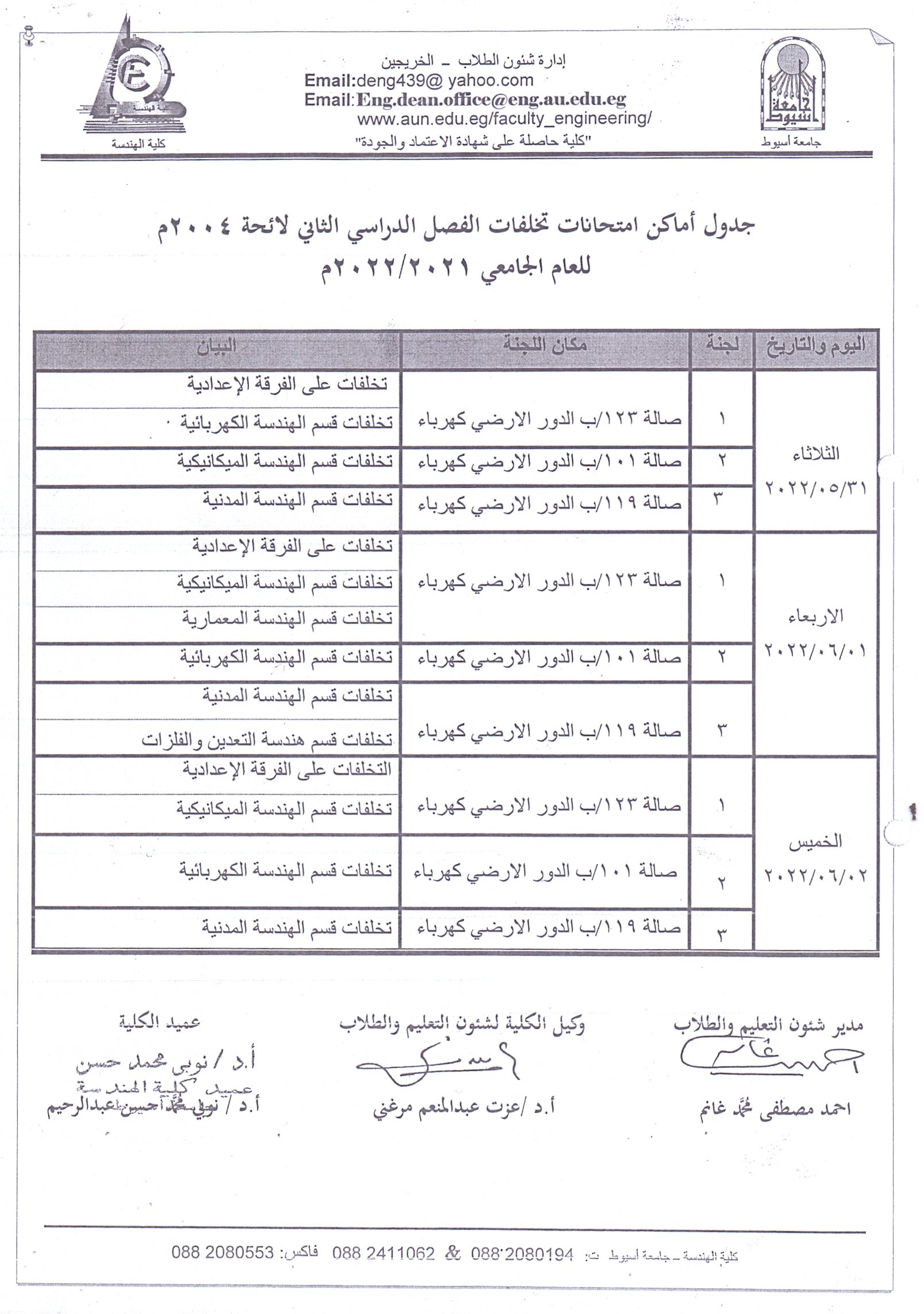 جدول امتحانات التخلفات للفصل الدراسي الثاني (لائحة 2004)