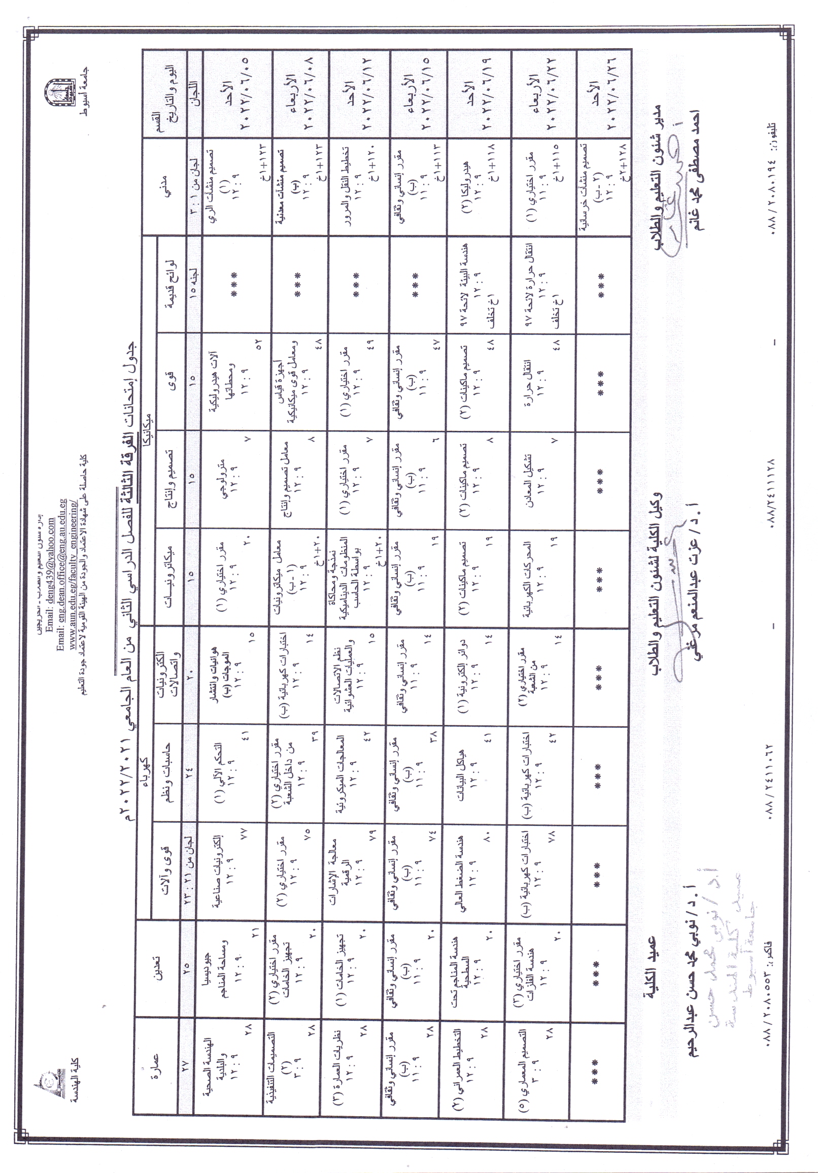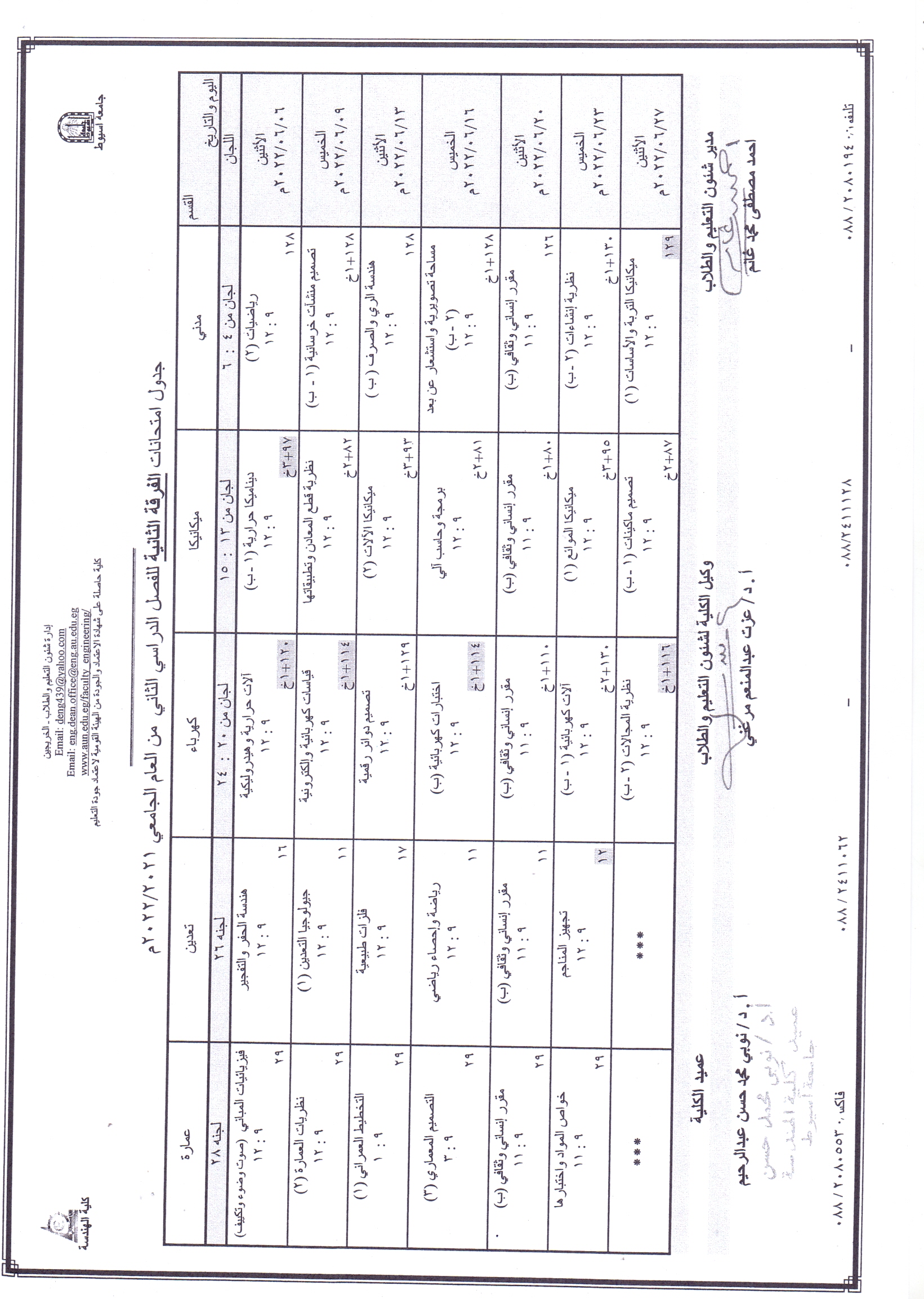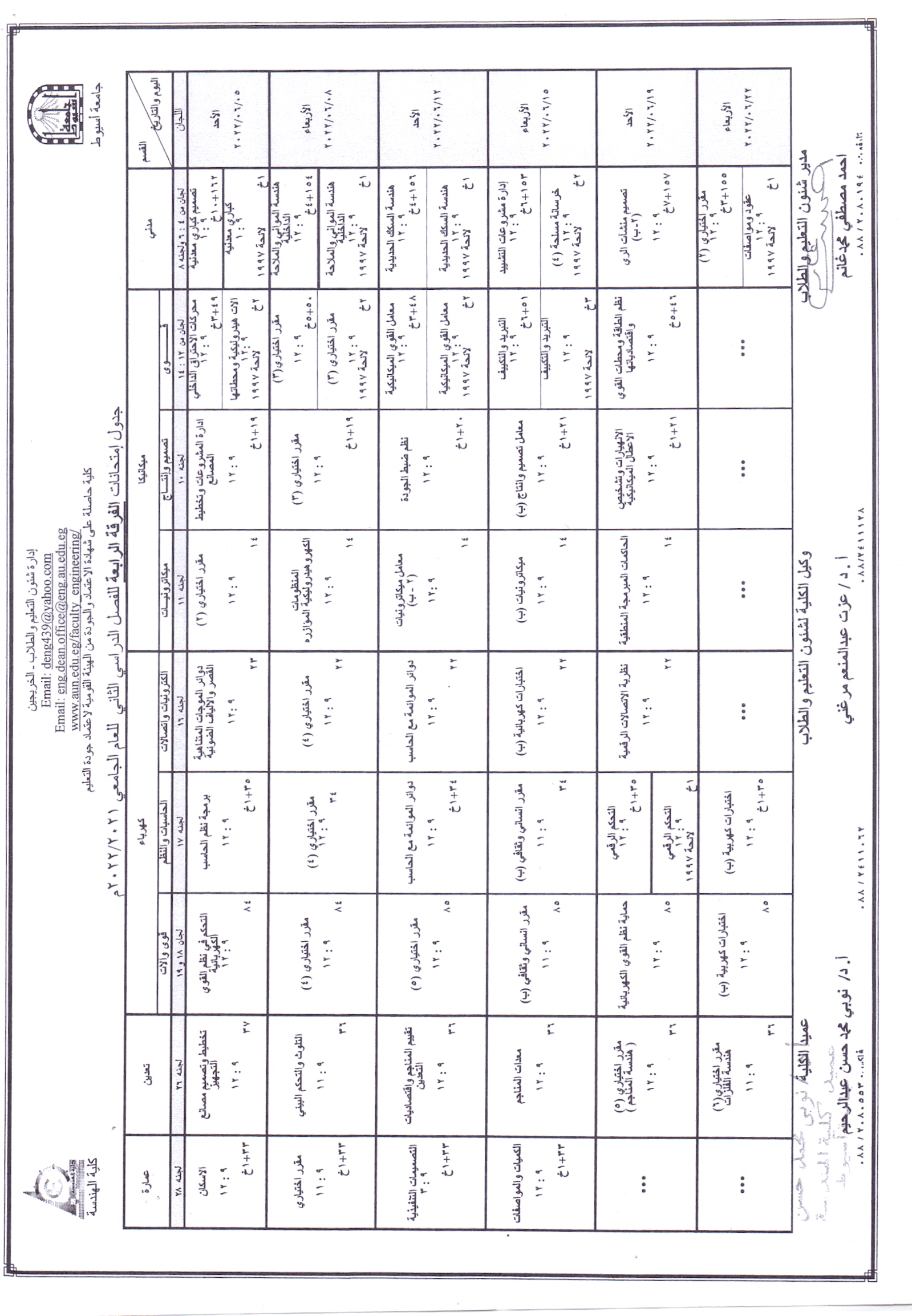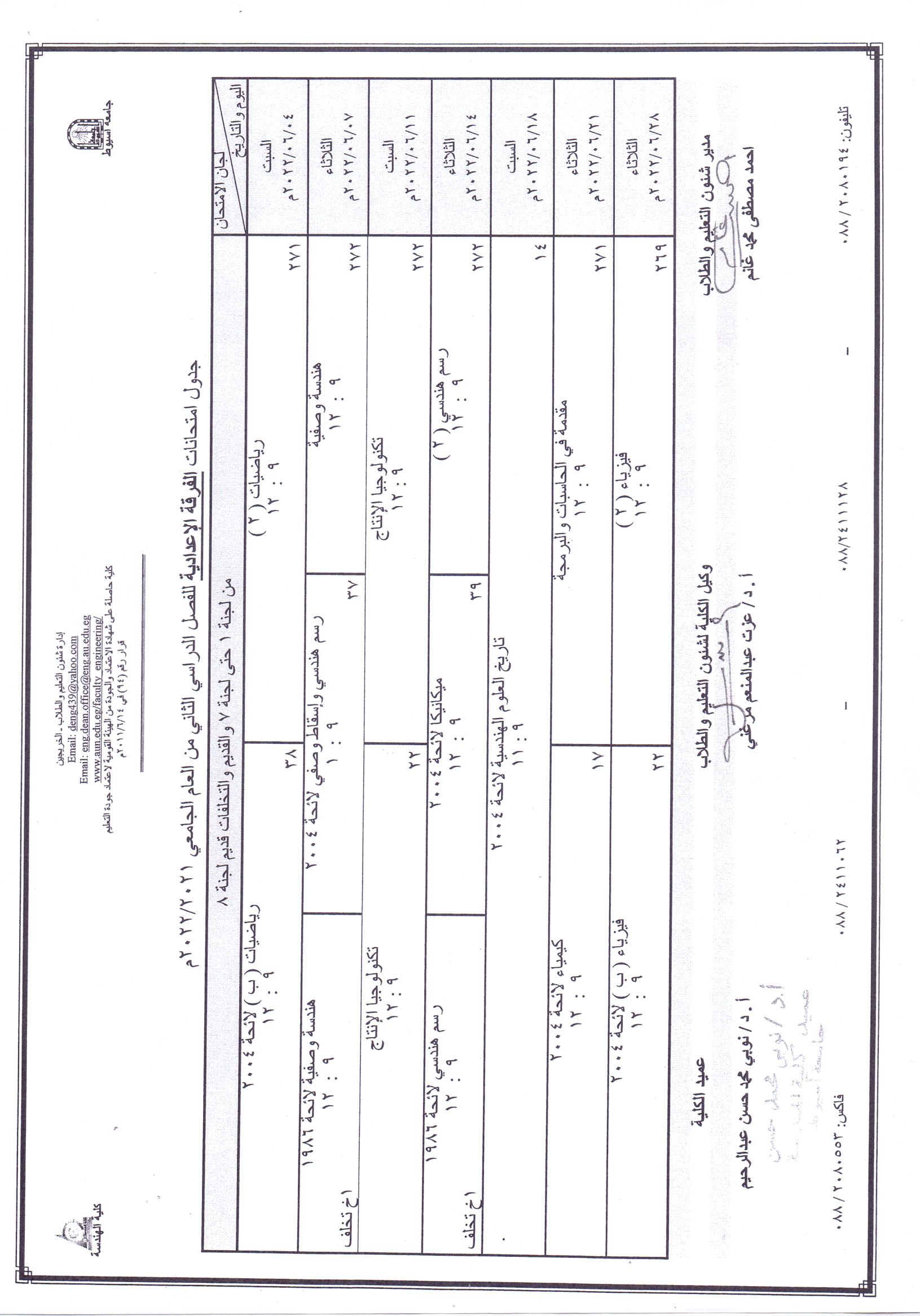 جدول امتحانات التخلفات للفصل الدراسي الثاني (لائحة 2004)