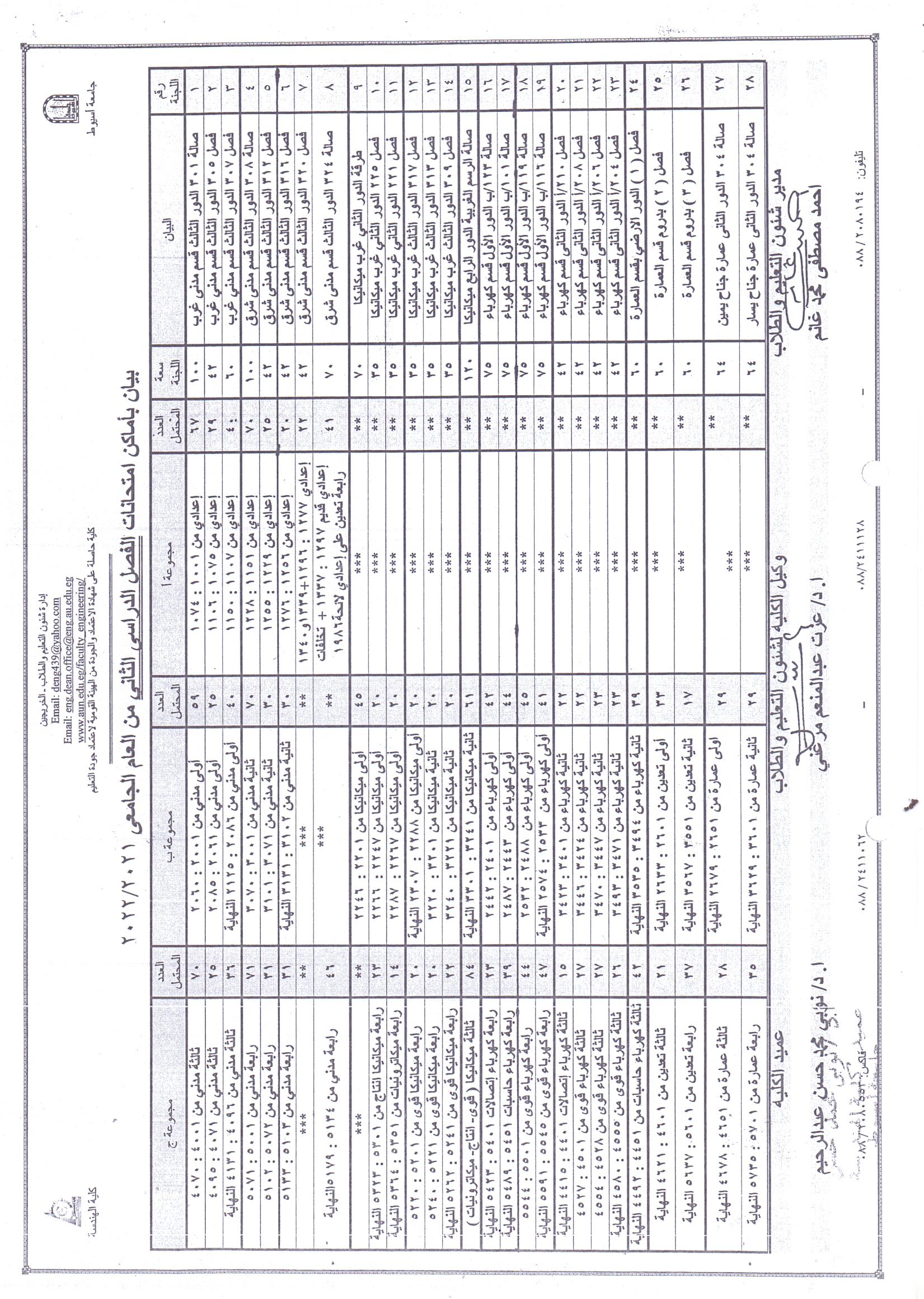 جدول أماكن امتحانات الفصل الدراسي الثاني 2022/2021م
