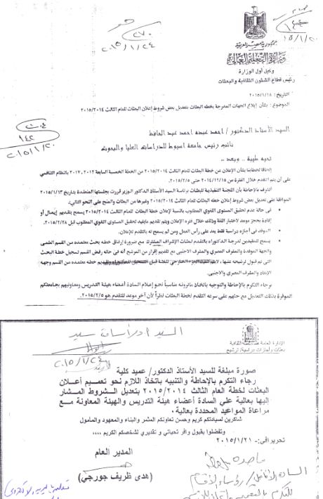 تعديل بعض شروط إعلان خطة البعثات للعام الثالث 2014/2015 31 يناير 2015 تعديل بعض شروط إعلان خطة البعثات للعام الثالث 2014/2015
