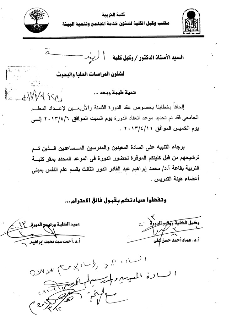 تحديد موعد انعقاد الدورة الثامنة والأربعين لإعداد المعلم الجامعي من يوم السبت الموافق 6/4/2013 17 مارس 2013 تحديد موعد انعقاد الدورة الثامنة والأربعين لإعداد المعلم الجامعي من يوم السبت الموافق 6/4/2013