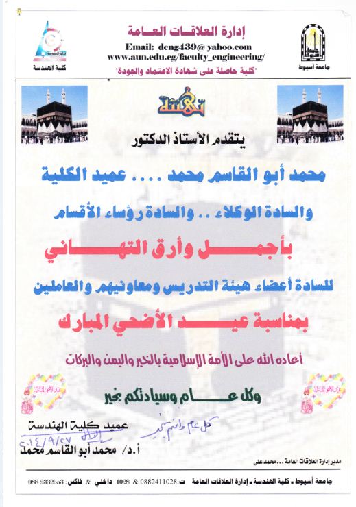 يتقدم الأستاذ الدكتور محمد ابو القاسم محمد عميد كلية الهندسة