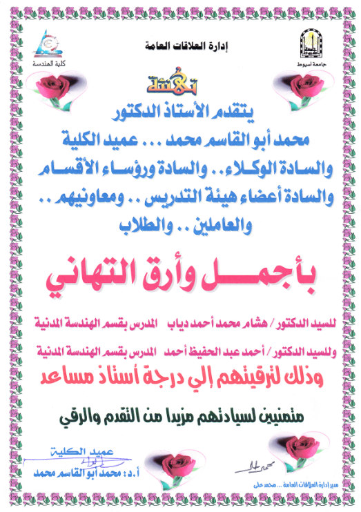 يتقدم الأستاذ الدكتور/ محمد أبو القاسم محمد ــ عميد كلية الهندسة