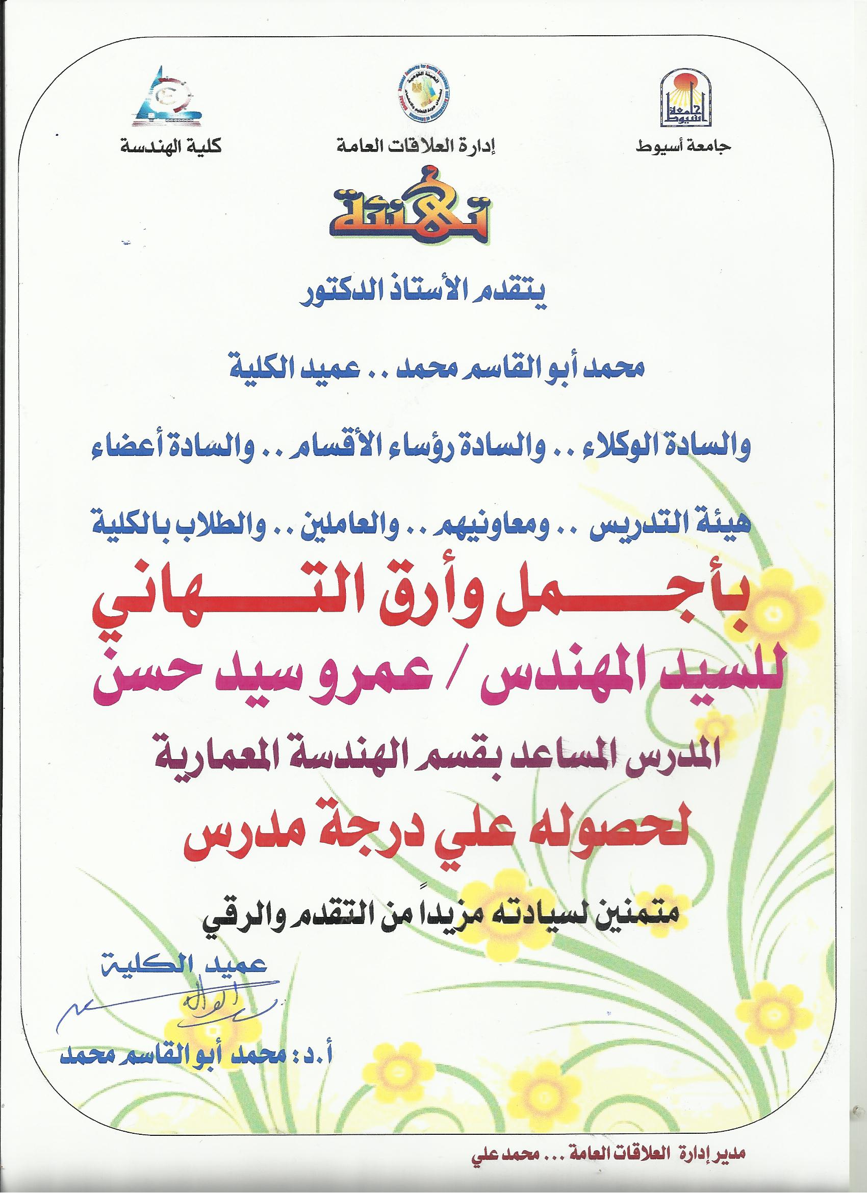 يتقدم الأستاذ الدكتور/ محمد أبو القاسم محمد ــ عميد كلية الهندسة