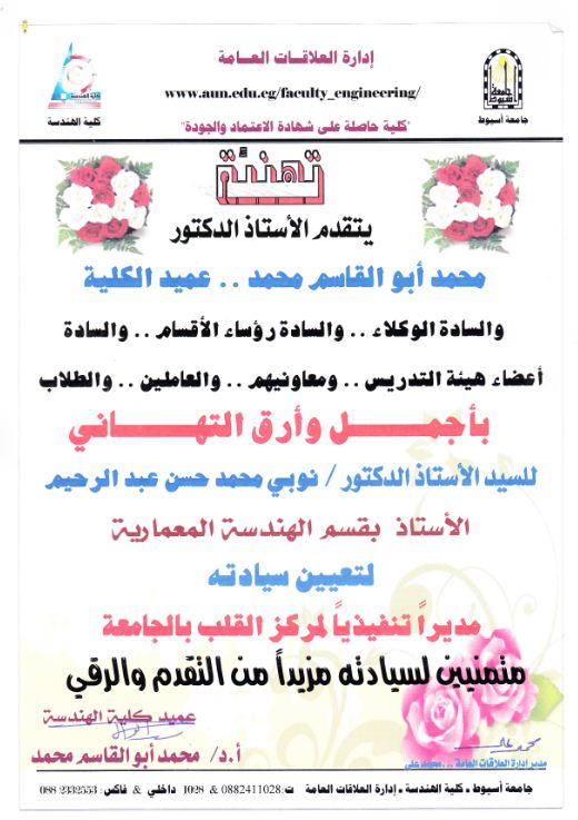 يتقدم الأستاذ الدكتور محمد ابو القاسم محمد عميد كلية الهندسة