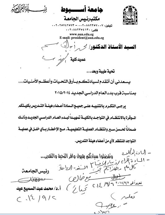 تنبيه خاص بالسادة أعضاء هيئة التدريس من مكتب رئيس الجامعة 8 سبتمبر 2014 تنبيه خاص بالسادة أعضاء هيئة التدريس من مكتب رئيس الجامعة