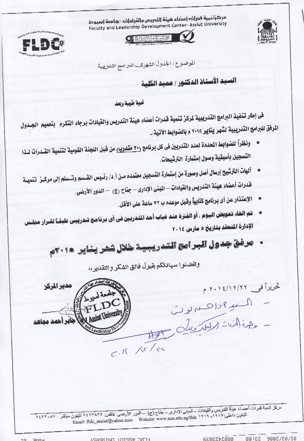 يعلن مركز تنمية قدرات أعضاء هيئة التدريس والقيادات عن برامج تدريبية خلال شهر يناير 2015 22 ديسمبر 2014 يعلن مركز تنمية قدرات أعضاء هيئة التدريس والقيادات عن برامج تدريبية خلال شهر يناير 2015