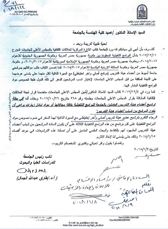 Candidacy of faculty members of the teaching staff in all fields between the Egyptian government and other countries 10 January 2018 Candidacy of faculty members of the teaching staff in all fields between the Egyptian government and other countries