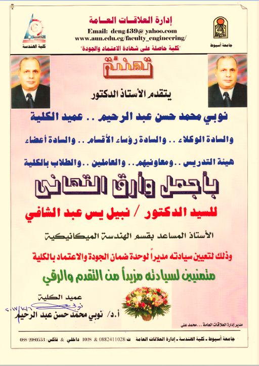 Congratulations to Dr. Yassin Nabil Abdul Shafi for his appointment as Head of Quality Assurance and Accreditation Unit 6 December 2017 Congratulations to Dr. Yassin Nabil Abdul Shafi for his appointment as Head of Quality Assurance and Accreditation Unit
