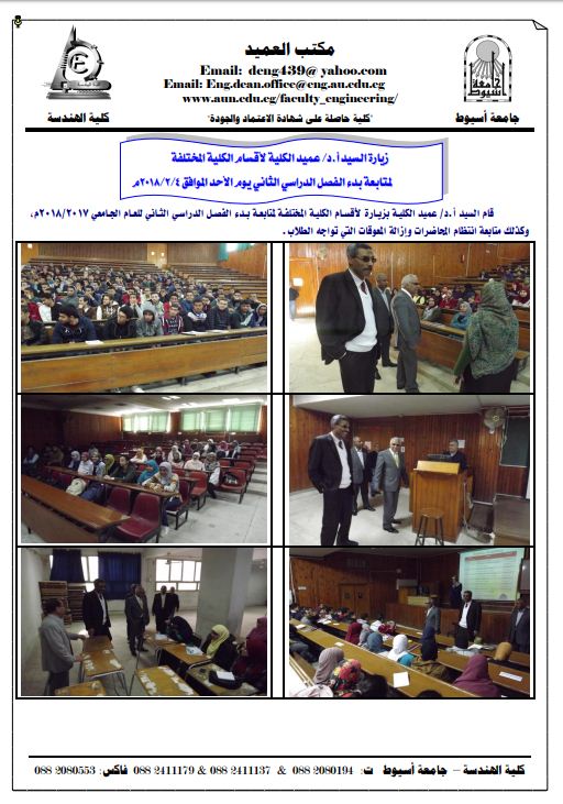 Prof. Dr. Nubi Mohamed Hassan, Dean of the college, visited all departments of the college to follow up on the learning process, the conduct of lectures and the removal obstacles facing students with the beginning of the second semester of the academic year 2017/2018
