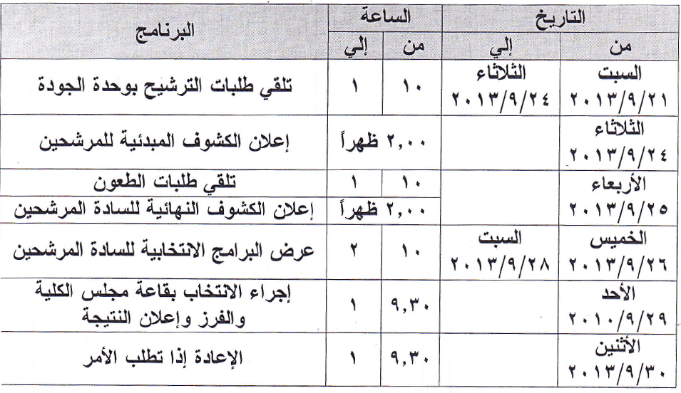 The electoral supervisory commission for the university leaders in the faculty of engineering announces that the dean of the faculty position is available. Candidates can get a nomination application personally from the quality assurance and accreditation office. The elections will be held according to the following schedule: