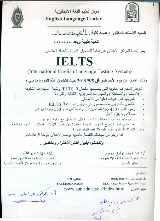The English language Learning Center announces the commencement of registration for the IELTS Preparation course from Sunday, 2019/5/5
