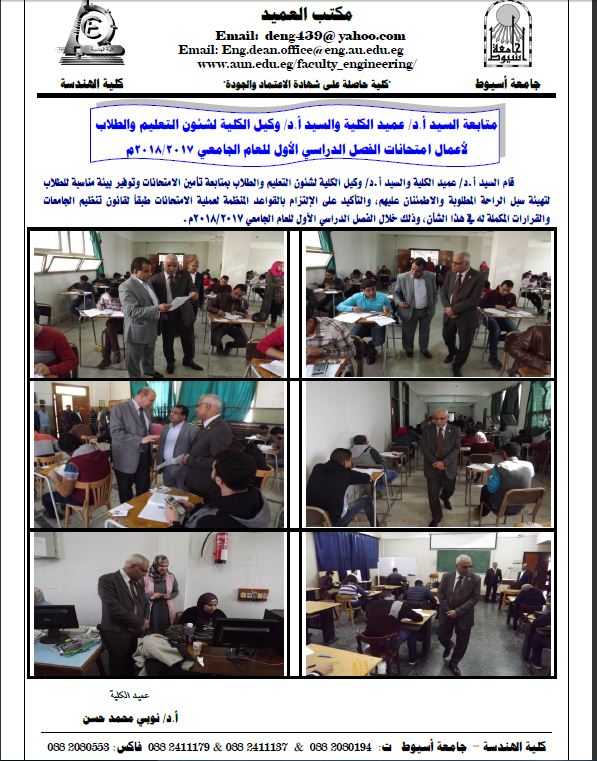 Follow-up of the Dean of the College and the Vice Dean for Education and Student Affairs for passing exams 24 December 2017 Follow-up of the dean of the College and the undersecretary for education and student Affairs for the course of the first semester exams.