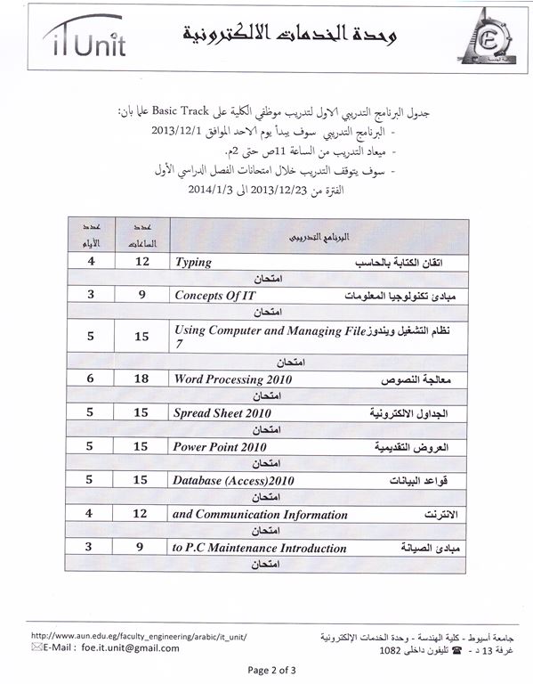 Free Basic Track Course for Employees 27 November 2013 The ITUnit offers free Basic Track course for the employees to improve their computer skills. The training will stop during the examinations and continue after them according to the following timetable.