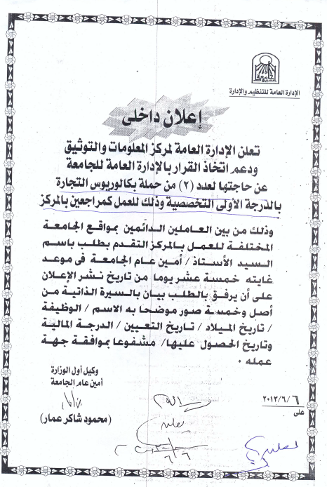 Job Vacancies for Commerce Graduates 10 June 2013 The general administration of the information and documentation centre two commerce graduates from the permanent employees to work as reviewers.This announcement is available for 15 days only.
