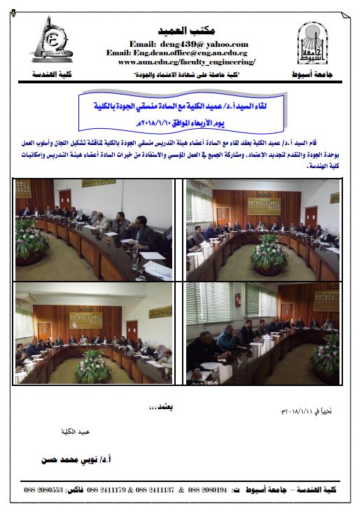 Meeting of Dean of the faculty with faculty members of college quality coordinators on Wednesday, 10/1/2018