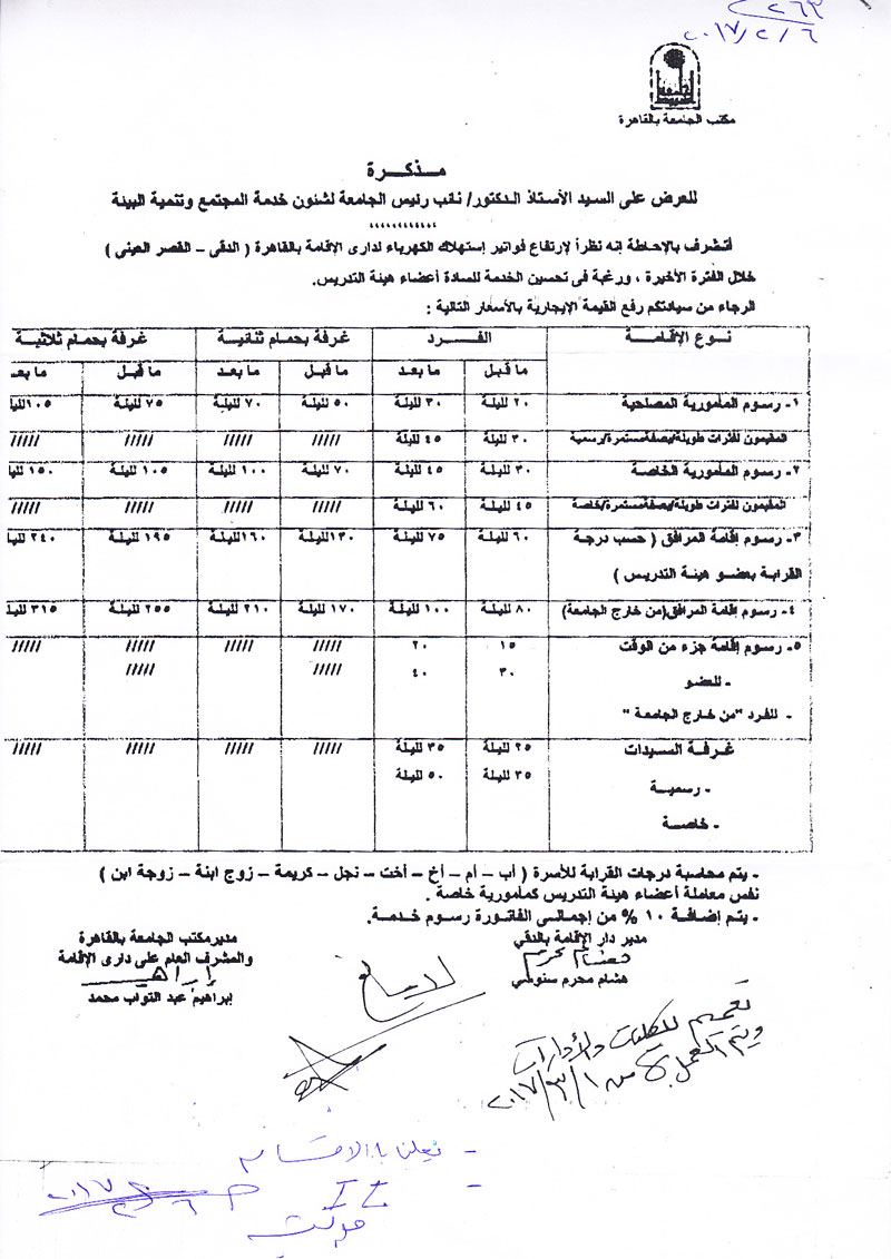 Memorandum of particular high electricity bills for the residence in Cairo (Dokki - Kasr Al Ain) 7 February 2017 Memorandum of particular high electricity bills for the residence in Cairo (Dokki - Kasr Al Ain)