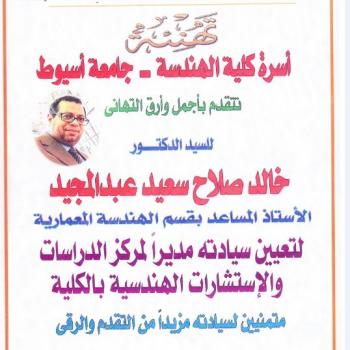 Dr. Khalid Salah Saeed, Assistant Professor in the Department of Architecture, appointed director of the Center for Engineering Studies and Consultancy