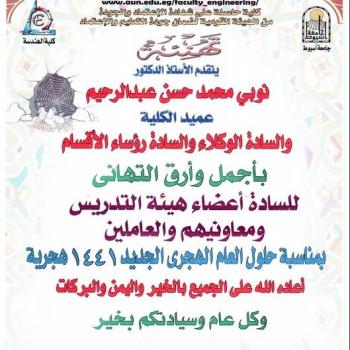 Congratulations from the Dean of the Faculty of Engineering, University of Assiut on the occasion of the new Hijri year 1441 Hijri