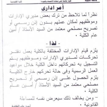Administrative order for the staff of the Faculty of Engineering, Asiut University