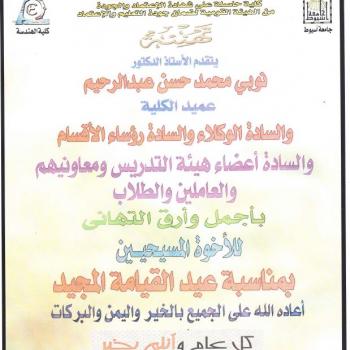 Congratulation from the College of Engineering for the Christian Brothers on the occasion of the glorious Easter