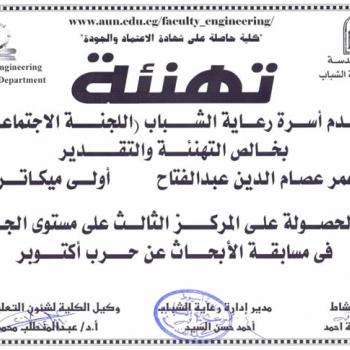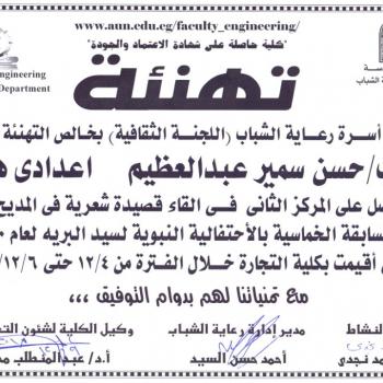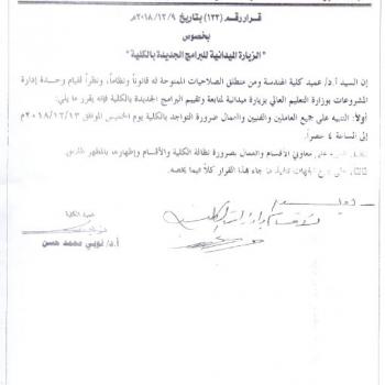 The exam of the work of the year in the subject (prevention of occupational hazards) for the 4th Division Civil Civil Engineering Department halls on Sunday, 9/12/2018 from 4 pm and for two hours.