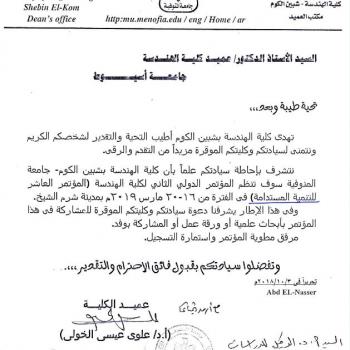 2nd International Conference of the Faculty of Engineering (10th Conference on Sustainable Development) at Menoufia University