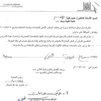 Important for advanced researchers to graduate studies in Egyptian universities and faculty members advanced for promotion or travel
