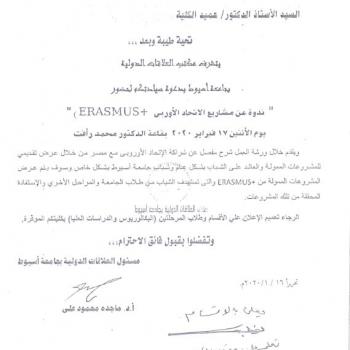 Invitation to attend the international scientific conference of advanced engineering and technologyWhich will be held from February 11.12, 2020 at Asyut UniversityThe opening will be at 9:30 a.m. on…