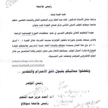 Under the auspices of His Excellency Prof. Dr. Khalid Abdul Ghaffar, Minister of Higher Education and Scientific Research, The University of Sohag organizes the second international conference of the…