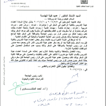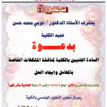 Prof. Dr. Nobby Mohammed Hassan, Dean of the Faculty of Engineering, is honored to invite the technical staff of the Faculty to attend a meeting with His Excellency to discuss the problems of the…