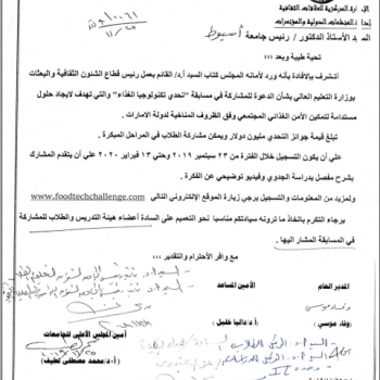 Mr. Al-Qaf is the head of the cultural affairs and missions sector at the Ministry of Higher Education to invite you to participate in the "Food Technology Challenge" competition, which aims to find…