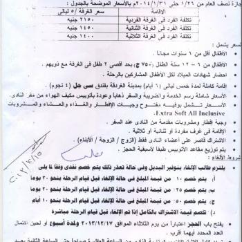 Faculty staff club is organizing a trip to Hurghada for 5 days (4 nights) in the mid-term vacation from 1-2-2014 to 5-2-2014. The cost for double room is 800 L.E and for the triple room 760 L.E. The…