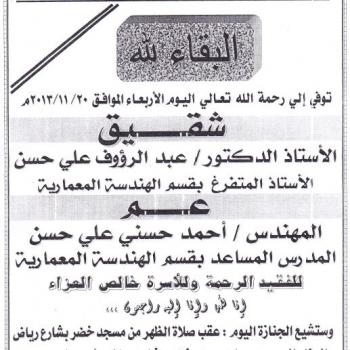 The faculty of engineering would like to express its deepest sympathy to Professor Abd El-Raouf Ali Hassan, the emiritus professor in architectural department, on the demise of his brother on…