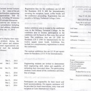 The Military Technical College sent a letter to the faculty to inform it about the appointment of its 7th International Scientific Conference and its exhibition that will be held from 27-5-2014 to 29…