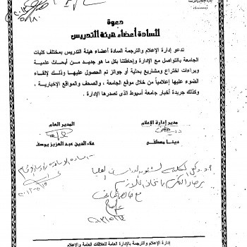 The media and translation department is asking all the faculty staff in assiut university to provide it with all their newest researches, patents,projects or prizes to be published in the…