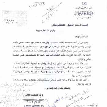 The ministry of higher education is collecting contact information about the scientific societies in the universities to be in touch with them to encourage the talents and inventions of the students