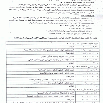 Scientific counselling and studies center in the faculty of science-Ain Shams university- will hold a training course to prepare specialized cadres to evalute the impact of projects on the enviroment…