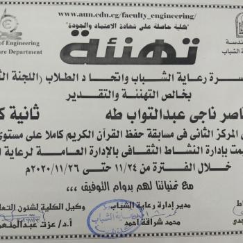 Special congratulations from the youth welfare family of the student / Nasser Naji AbdulTawab