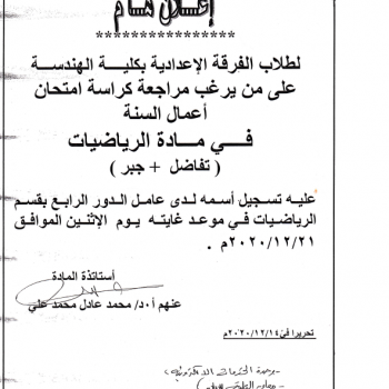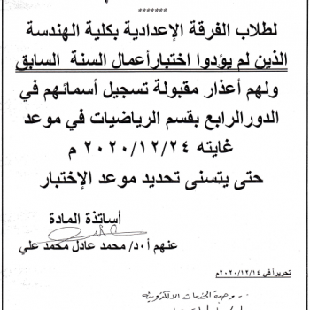 An important announcement for the students of the Middle School of Engineering who did not take the years work test