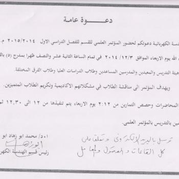The electrical department invites you to attend the scientific conference of the first semester 2014/2015. The conference will be held on Tuesday 3-12-2014 at 12:00 in amphitheatre D for…