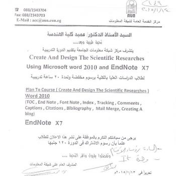 Assiut University Network offers Microsoft Word 2010 and Endnote x7 courses for postgraduate students. The fees for this course will be 120 L.E FOR 20 HOURS .