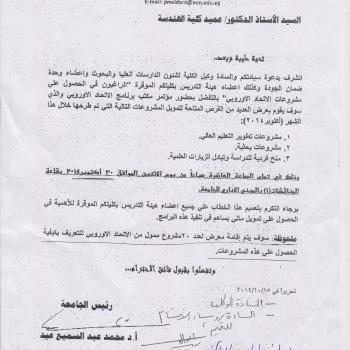 The president of Assiut University professor/ Muhammad Abd El-Samie invites the staff members of faculty of engineering to apply for European Union Funding Projects available in 30-10-2014 in the…