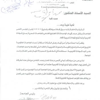 The Supreme Council of Universities decided that special units in egyptian universities will offer trianing certificates only due to the existence of some fraud caompanies that take advantages of the…
